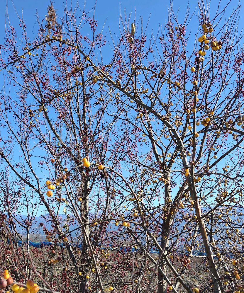 ③④豆柿みたいな小さなオレンジ色の実ともっともっと小さな真っ赤な実がたわわに実っていました🧡🧡🧡❤️❤️❤️