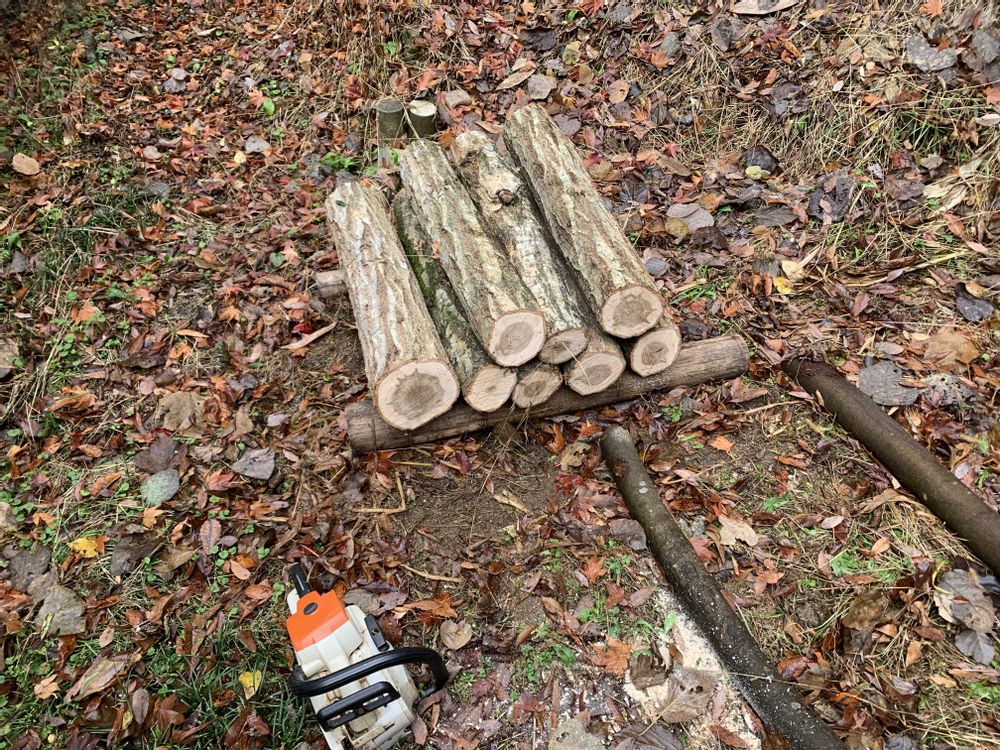 伐採してたコナラを玉切りしていきます😀ヒラタケがまた大きくなってました😀2つナメクジに穴を開けられてたので収穫😀椎茸のホダ木とナメコのホダ木にします😀ナメコの駒菌100コだけの予定でしたが、足らずに急いで買いに行き、結局ナメコの原木3本にしておきました😀椎茸出て分が足らなくなるからね😅💦