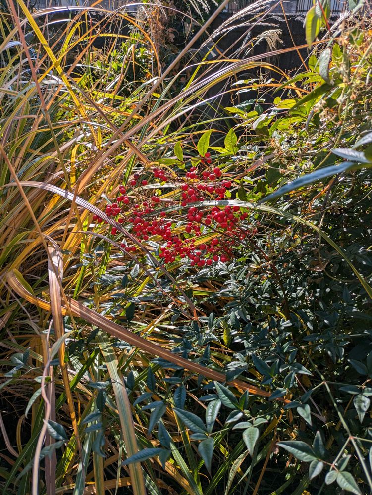 空き家になった親戚の家🏚️で…真っ赤に色づいたナンテンの実🔴🔴🔴が🌾やワビスケ🤍と一緒にひっそり咲いていました😔