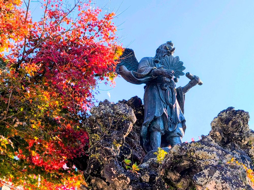 ここでは天狗さんの姿をした火除け・厄除けの神様数体が建長寺の方向を向き建長寺を守護しています👺