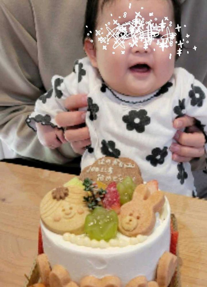 昔は鯛やら赤飯やら歯固め石やら大変やったのに、若い親はお手軽にケーキで🎂💕