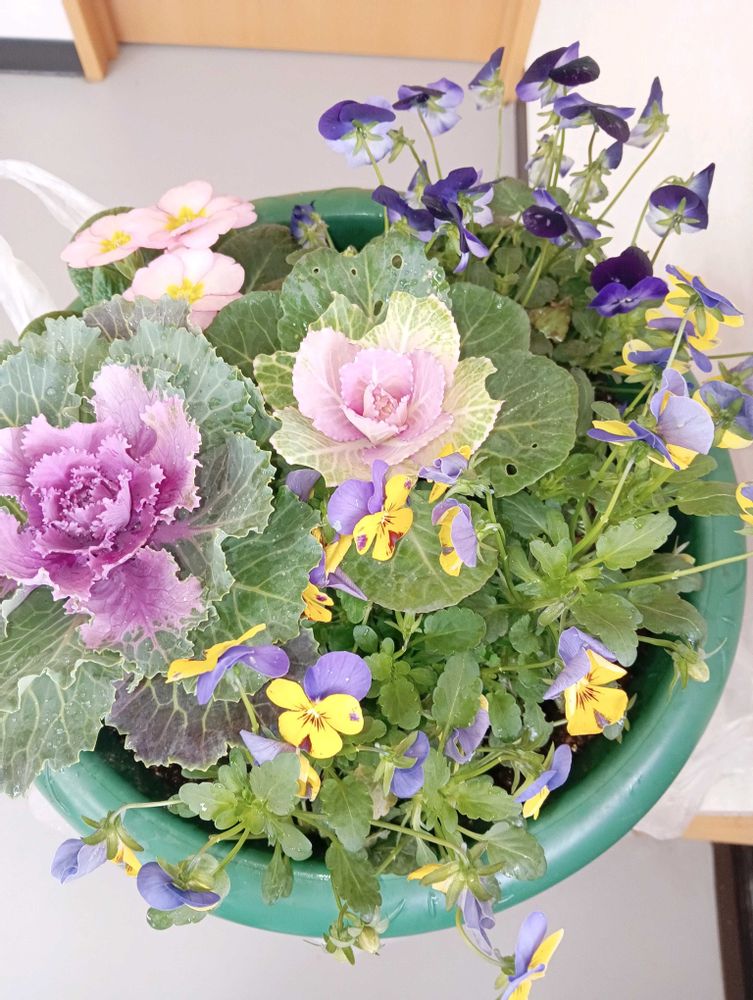 ビオラとパンジーの寄せ植え