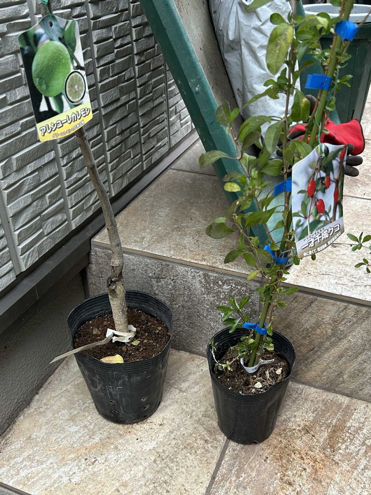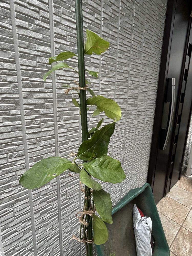 土曜日の花の大和のイベントでは花友フェスタ、フィンガーライムで知り合った方から苗木を分けていただきました。一気に大きくしたいので、垂直仕立てで植物ホルモンの力だけで大きくしていきます。道法スタイル。この栽培方法は、植物ホルモンだけで肥料要らないです。