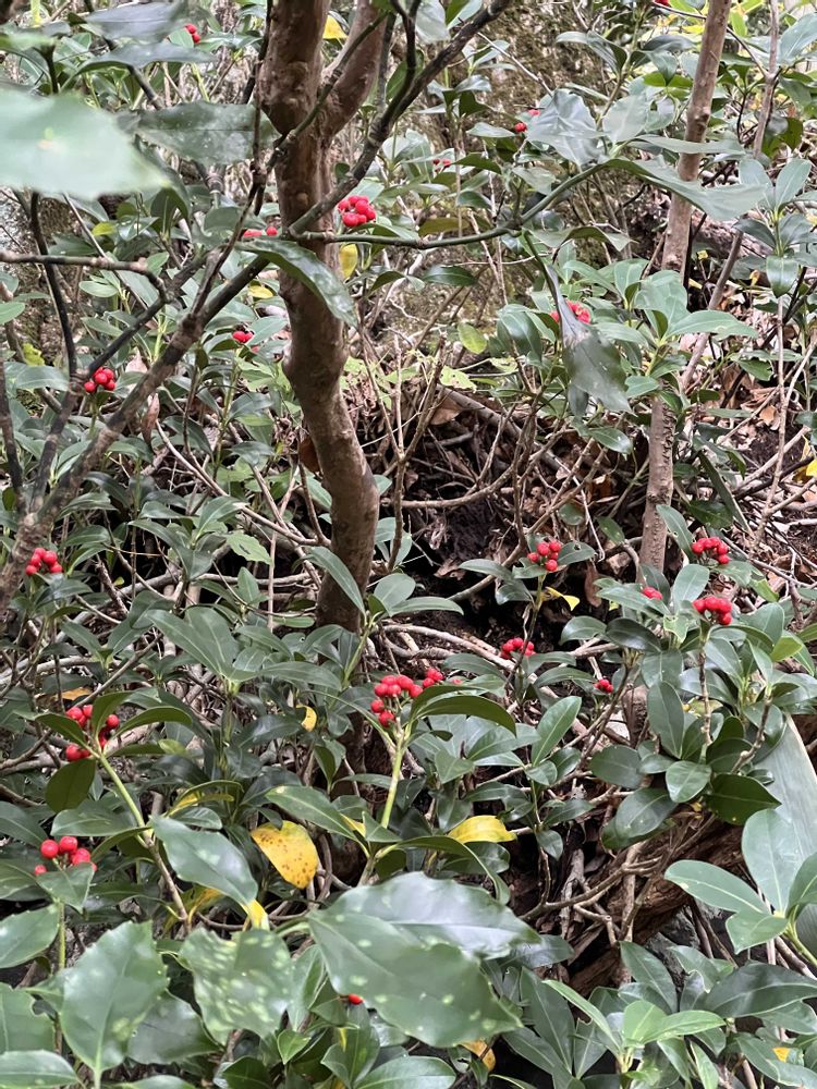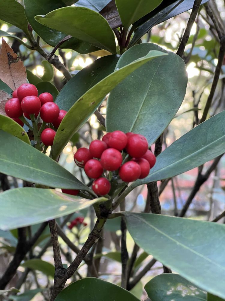 赤い実と常緑の葉、お似合いですよね🔴🟢