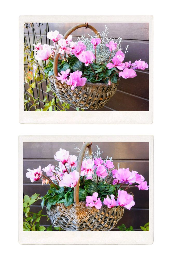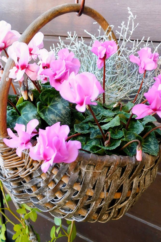 籠にシクラメン💠とプラチーナ✨良いですね~🎵(^^)