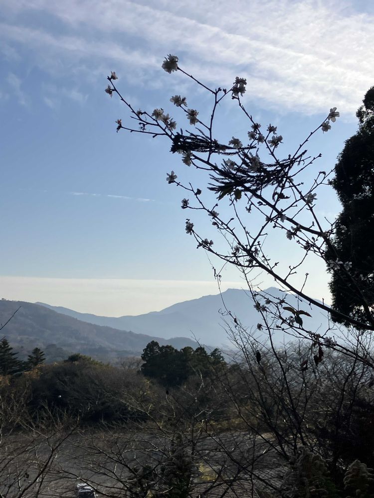ジュウガツザクラ越しに筑波山
