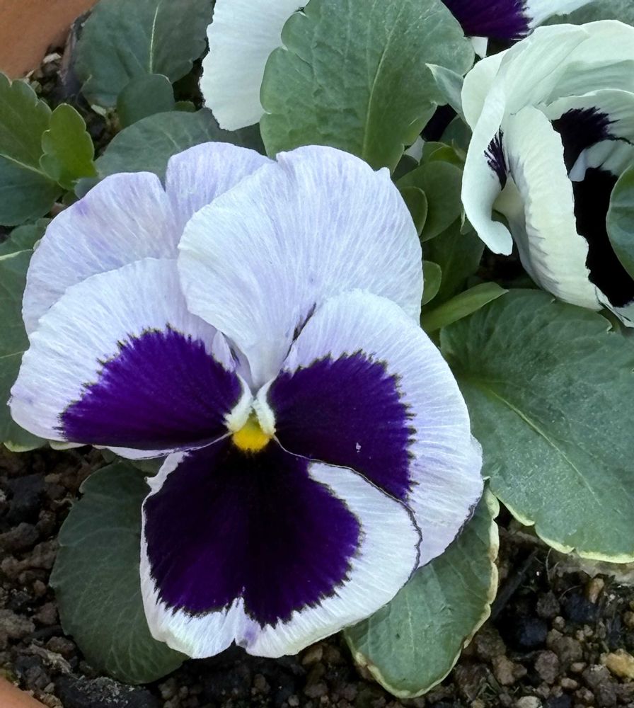 近所の『花屋さん』へ出向き、寄せ植え用のお花と冬の定番『ビオラ、パンジー』さんをお迎えし、久しぶりに鉢植え創りをしました。