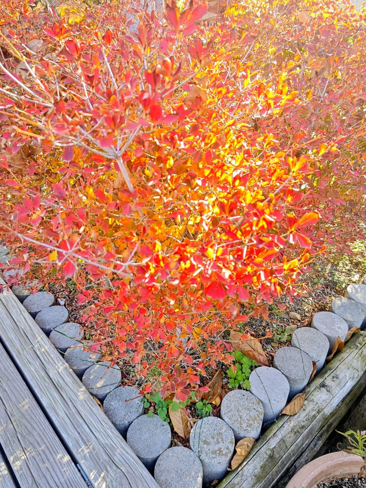 5枚め、昨日水やりに行った公園のドウダンツツジも真っ赤です✨️。
