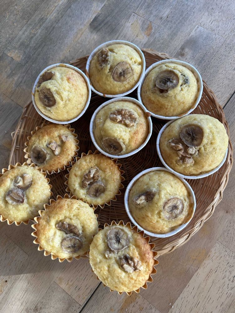 昨日は寒くて部屋に篭り作っていました😅バナナカップケーキ🧁も作りました