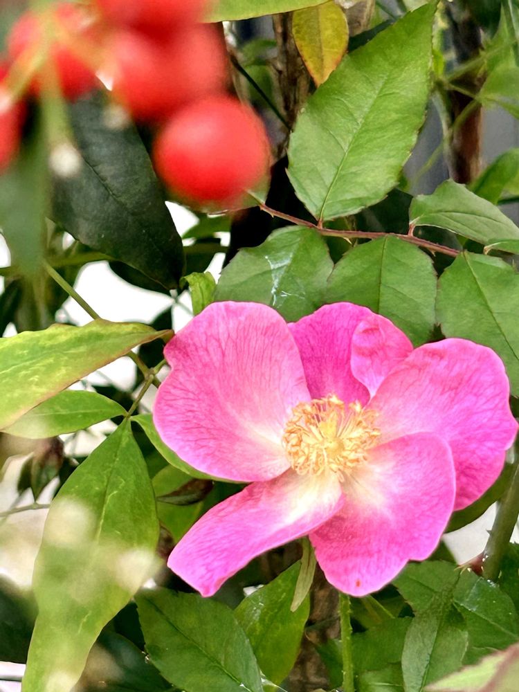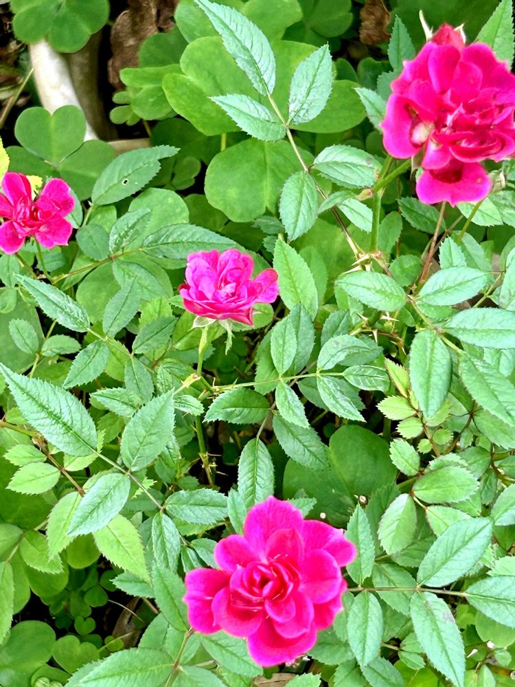 小庭のミニバラがポツポツと咲いてくれます🤗4枚目はツルバラピースで、遅くにツボミが出来てのでこのまま咲かないと思います😉