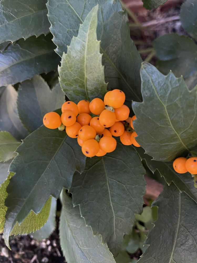 千両の実がオレンジ🧡色になって、美味しそうです。鳥🐦さんには、未だ大丈夫👌のようですね!