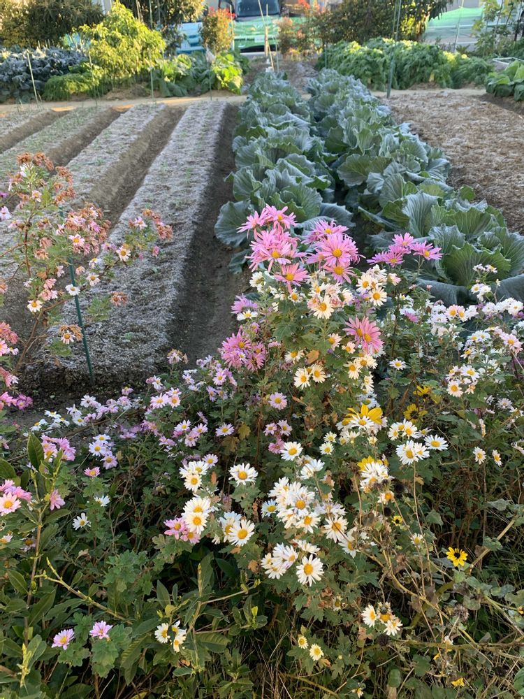 住宅街の家々の間に残された僅かばかりの畑にも、冬野菜の横がうっすらと白くなっています。