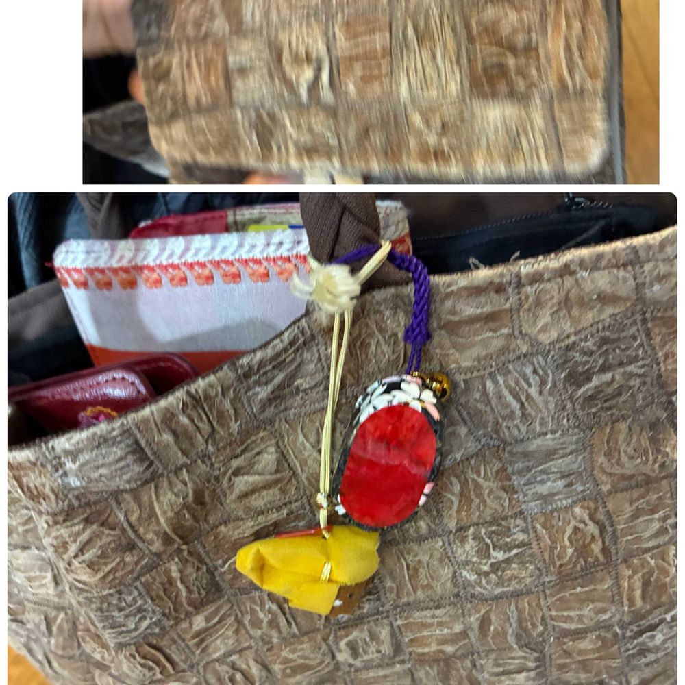 3枚目 マルシェに見えたお客様のバッグとお財布、なんとミノムシの皮製だそうです!!いったい何百匹使っているのかしら!?でも皮だけもらったら、木に返すそうですよ〜