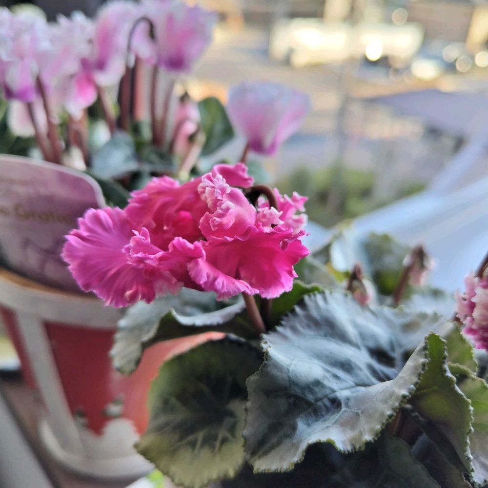 シクラメン 一鉢有るだけで回りも明るくなりますね😍キレイ(*´˘`*)♡.。.:*♡ •*¨*•.¸¸☆*・゚