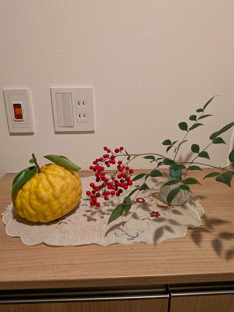 葉付きおミカンはおごそかな感じがしますので、大事に飾ってから食べることにしました🐰