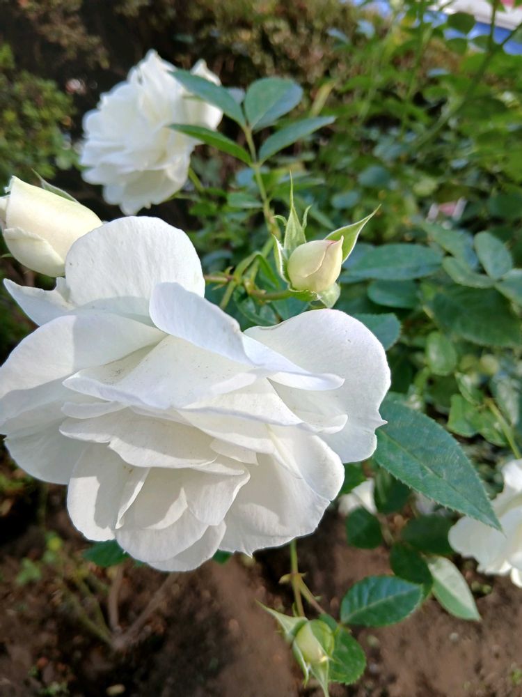 あら〜真っ白でとってもかわいいバラですね✨羨ましいです♪