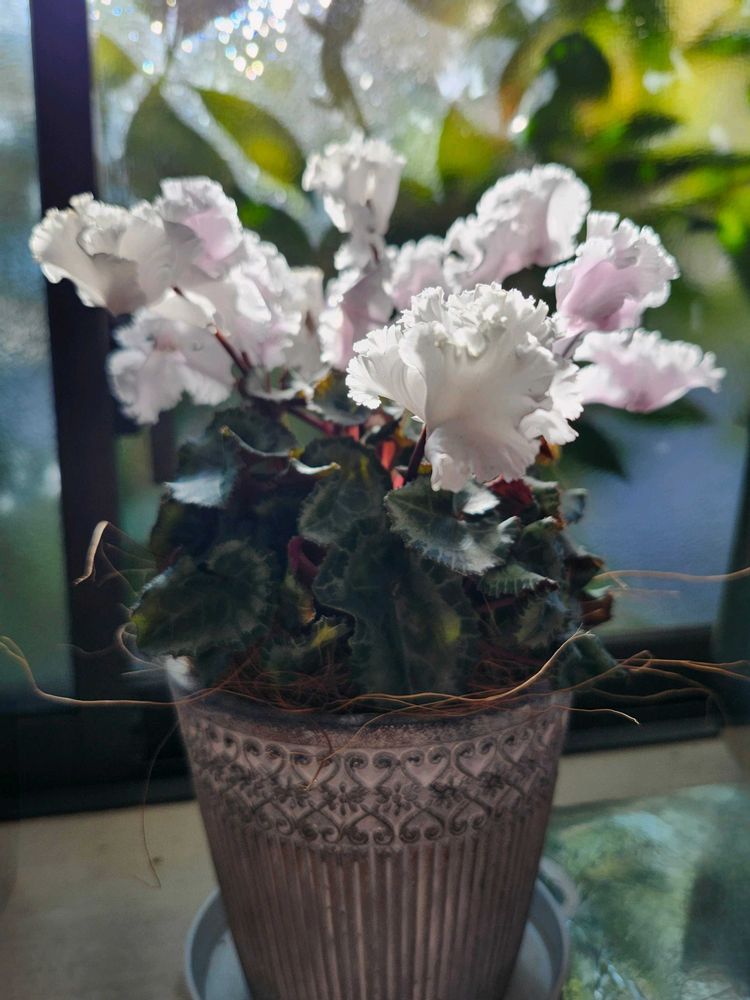 2️⃣ガーデンシクラメンかと思ってお外に置いてたらグッタリしちゃって慌てて取り込んだミニシクラメン🤍
