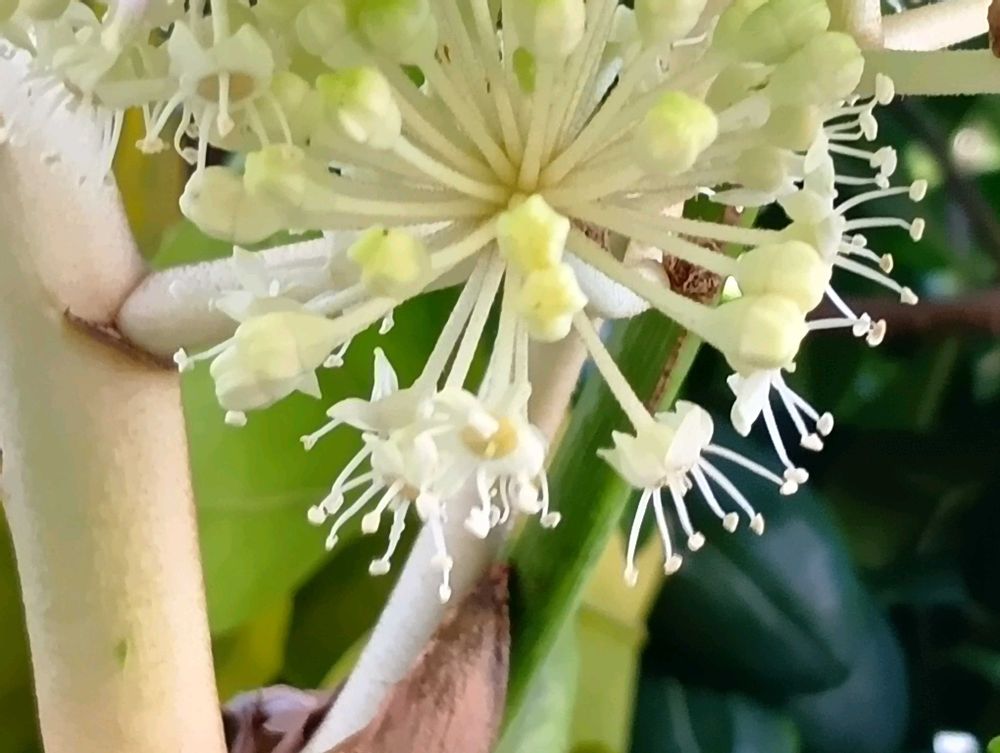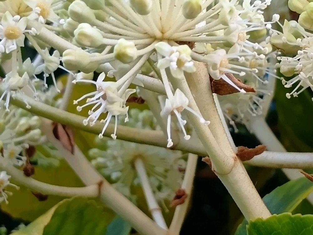 ヤツデのお花、もうこんなに咲いてるんや🤍🌿