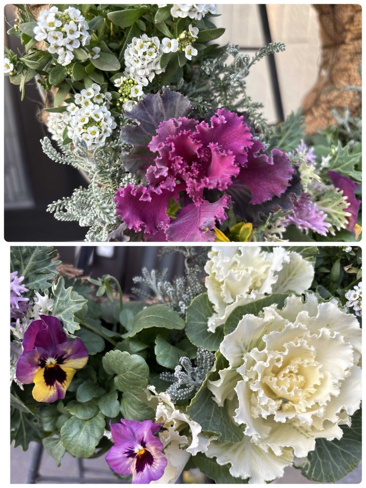 白の葉牡丹が少し大きかったためか、まん丸になりませんでしたが、ビオラ、アリッサムがもっと咲いたら気にならなくなるかなぁ⁈