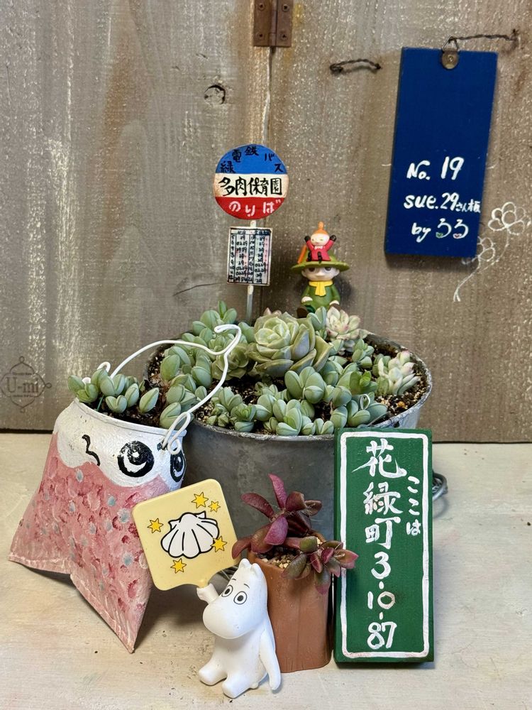 マクドナルドのムーミンは、穴が空いていたので桜吹雪を植えてみました🩷