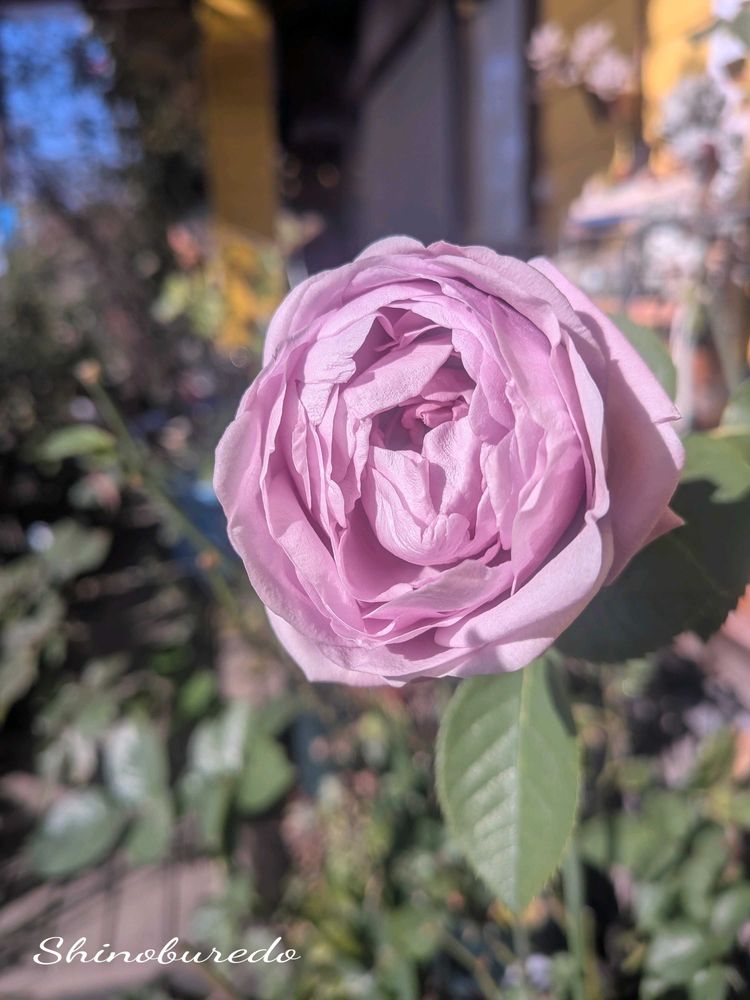 しのぶれど🌹は紫系だけれど、ニューウェーブ🌹は周りは白っぽくて中心に向かって紫濃くなるんてすよ☺️でも寒さからか全体紫になってます😅 それもまた可愛いんですけどね♥