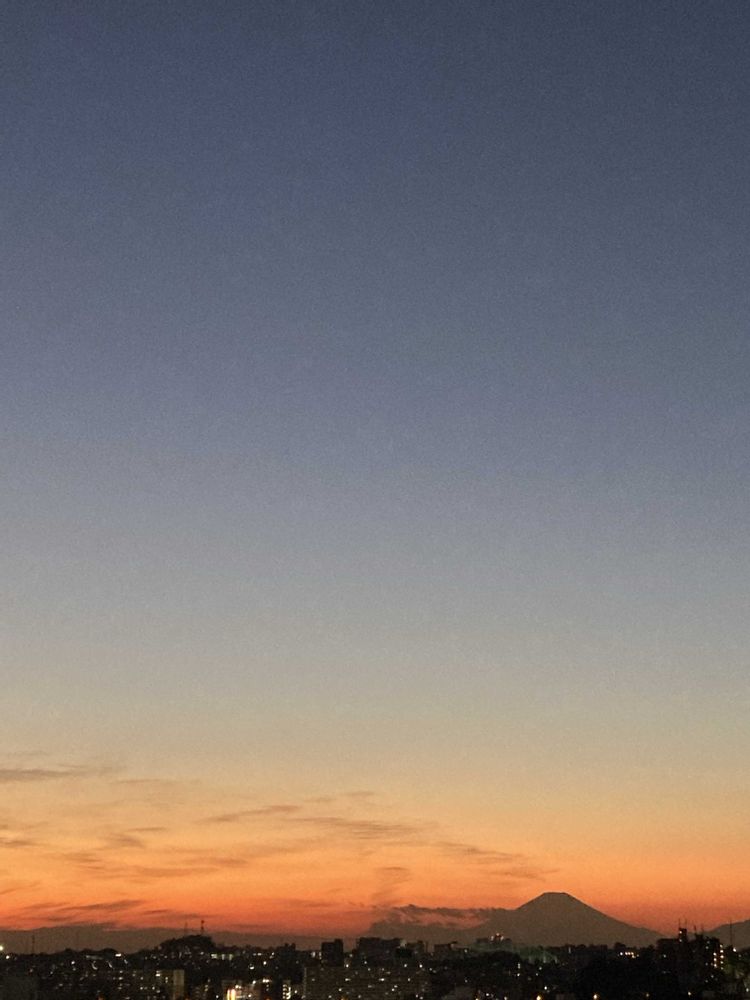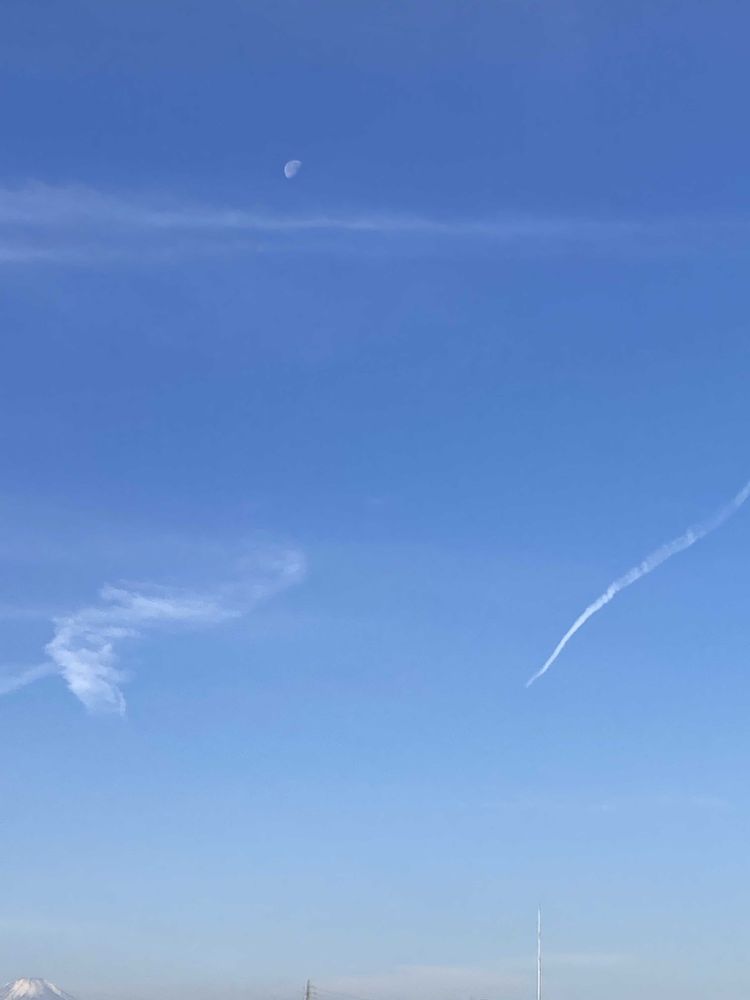 遠くの富士山🗻も少しお化粧して、上の方には月が残っています✨