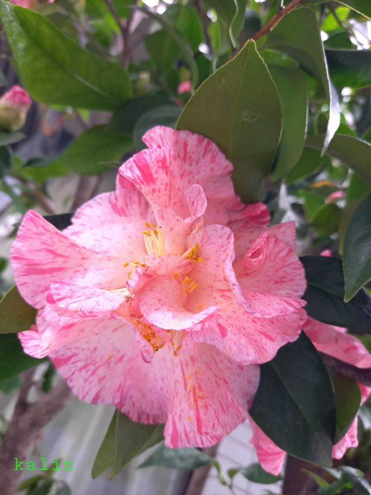 一色ではなく絞り?のような山茶花は初めて見ました。思わず撮りました。