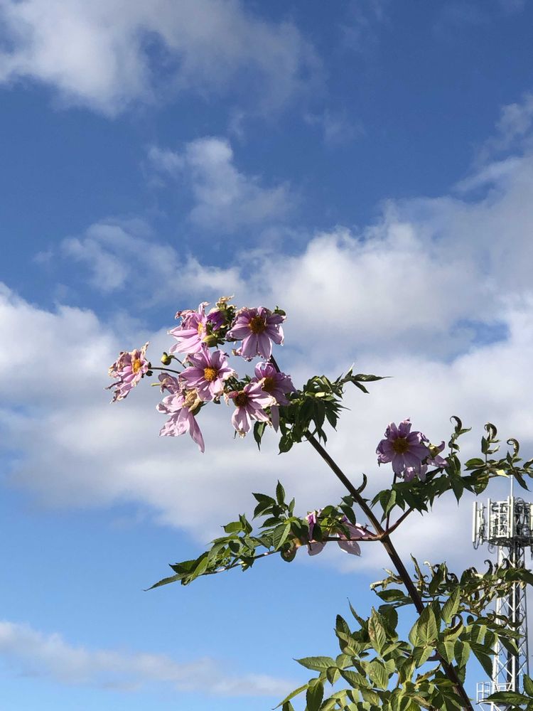 皇帝ダリア,ピンクの花,青空の投稿画像