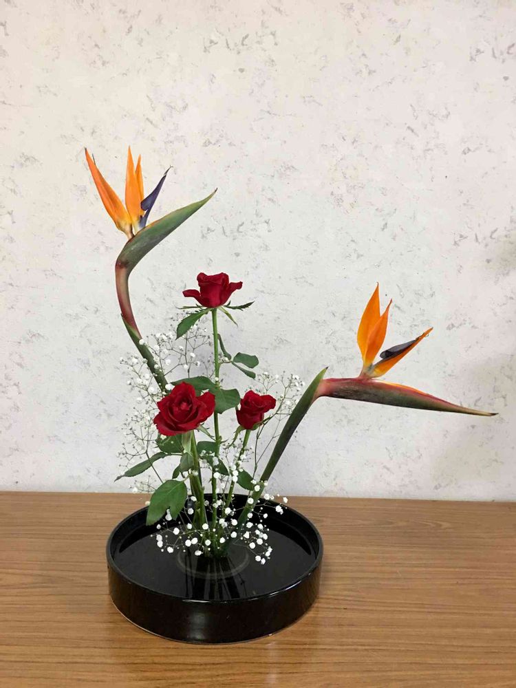 今回のお稽古🌼、未生流の基本形、色彩盛花、体用型C。
