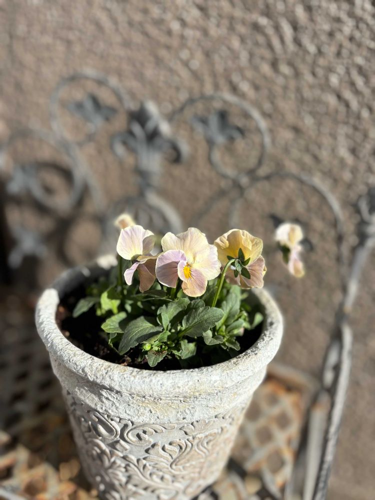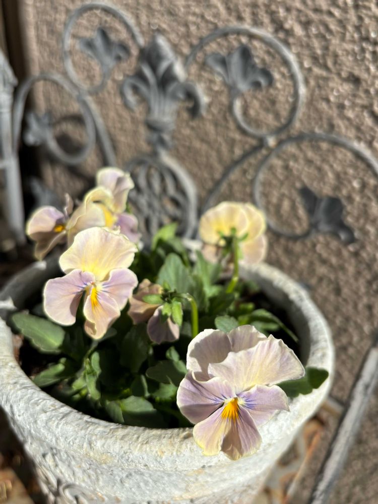 イエロー×グレーの優しいお色のビオラです