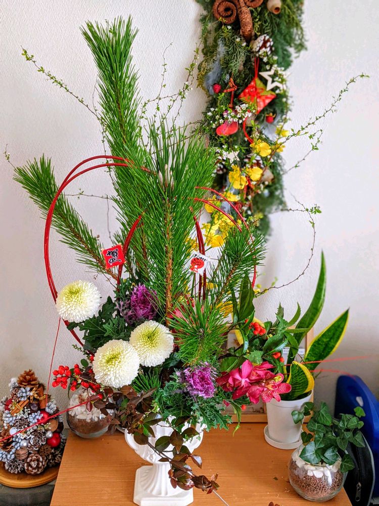 ボタニカルライフ講座でお正月🎍の花レッスンがありました.•*¨*•.¸¸♬