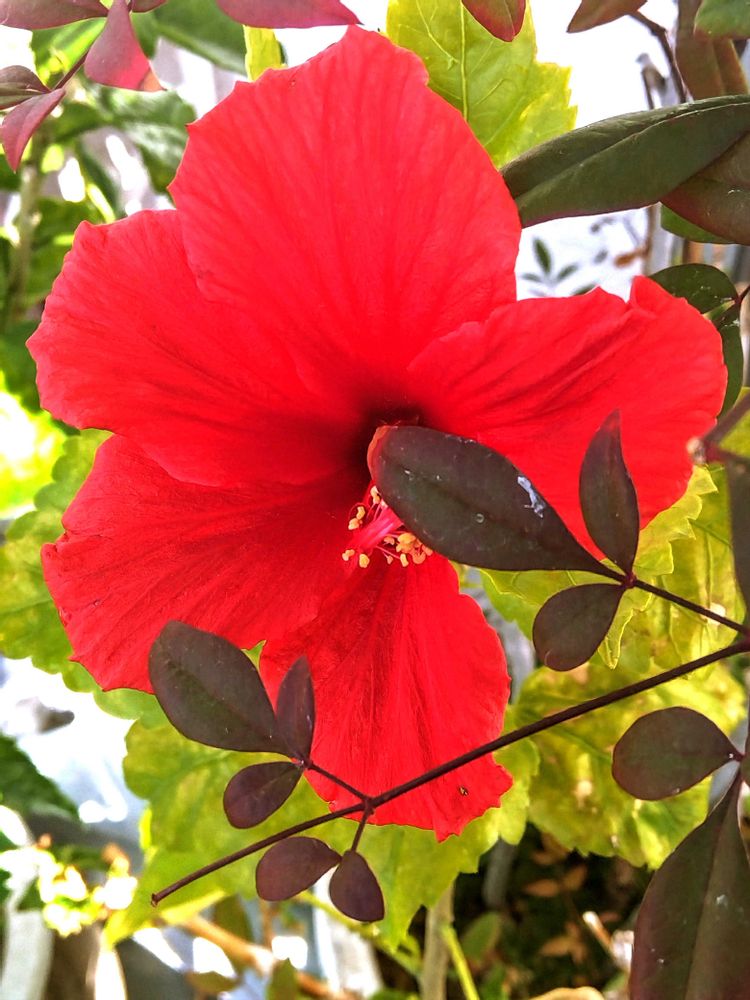 挿し木の赤いハイビスカスも小さめの花1輪🌺