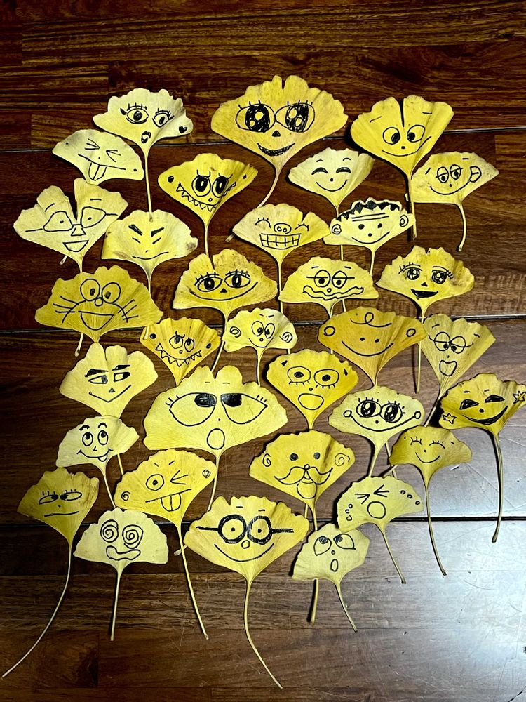 イチョウの葉アート、争奪戦な子供達の顔が浮かぶꉂ🤣𐤔