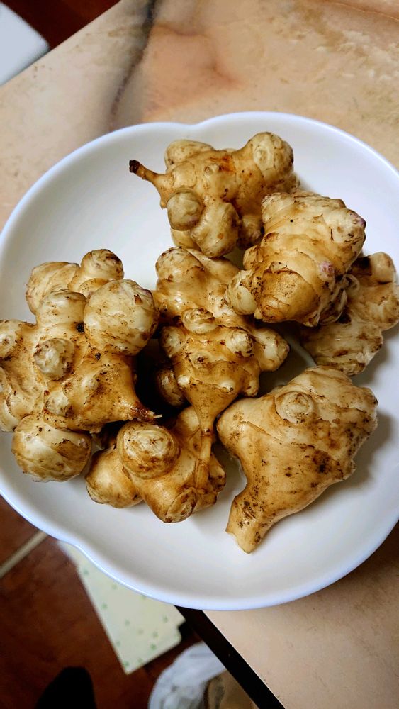 キクイモに出逢ったのは、今年の3月だったかな?道の駅でした。効能として生活習慣病に効果があると宣伝の貼り紙があり、肉じゃがに入れてみたりし、また買えるように覚えていたら、10月に同じ道の駅に行ったら、あったんです❣️❣️❣️