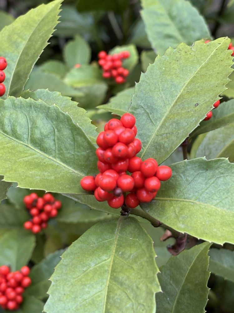 ① 藪柑子(ヤブコウジ):十両(ジュウリョウ)とも