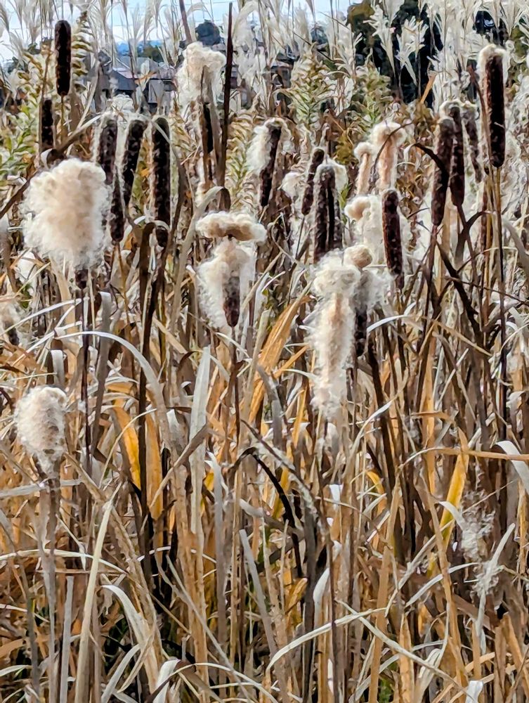 ガマの穂、爆発してますね😆