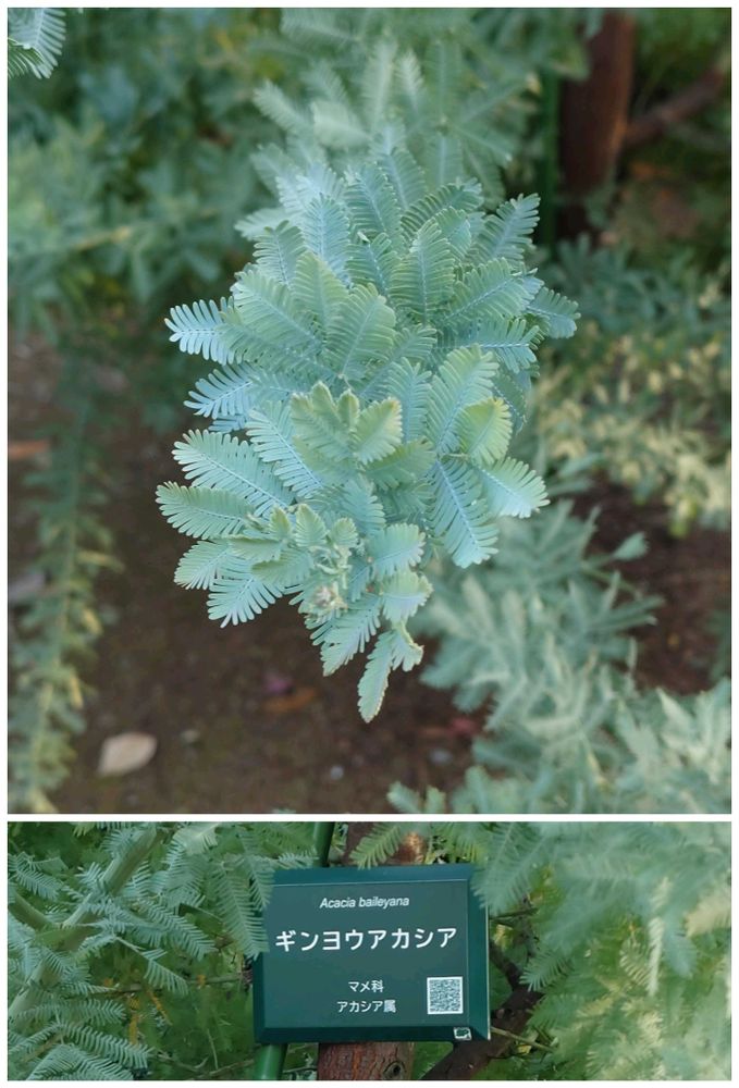 なんとも涼し気な風合いですね😲 雪の結晶をいくつも重ねたみたいです❄🧐 ギンヨウアカシアです😀 「銀葉」と書くんですね。なるほど💡 花の季節も楽しみです🥳(農業試験場内にて)