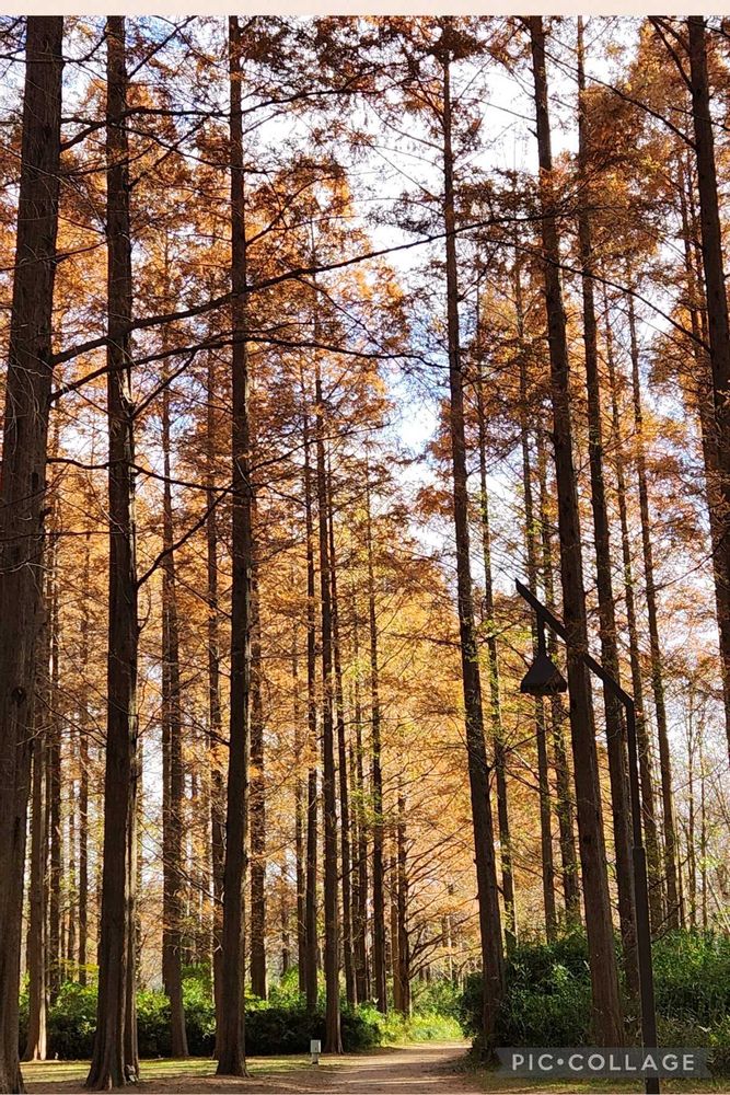 立ち並んでるメタセコイア、絵本の中に出てきそうな風景🍁♡