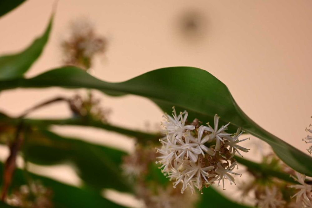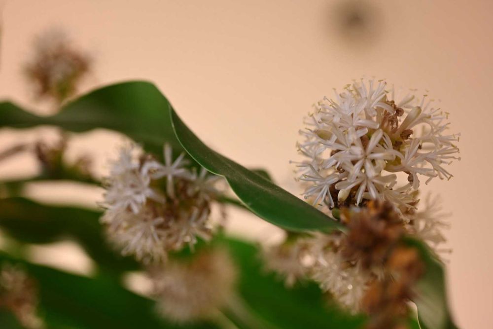 前に投稿した幸福の木の花が開いてきて、夜になると甘ーい香りを部屋いっぱいにただよわせます☘️