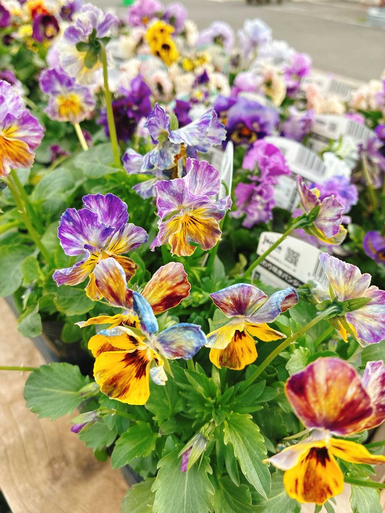 ビオラは目の保養に見に行ってるだけなのに、今日ときたらすごい柄のお手頃?価格の子達が:( ´◦ω◦`):