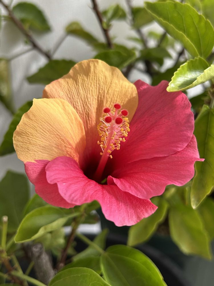 ①剪定を先延ばしにしてとりあえず室内にいれた🌺ちゃん、なぜかバイカラーに🤔