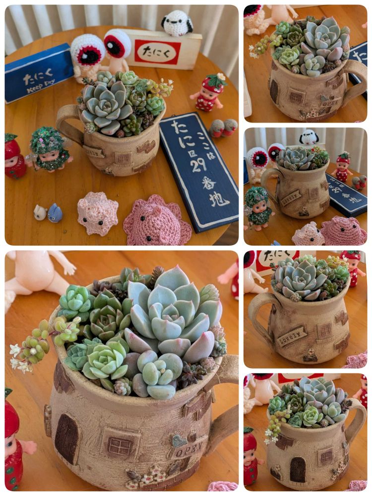 ③〜①もそうだけど、自分の家をぐるりと回ると寄せ植え作れちゃう〜〜①で余った多肉で作った寄せ植え勉強鉢〜〜あら、こうなると幾つも作りたくなっちゃう💦