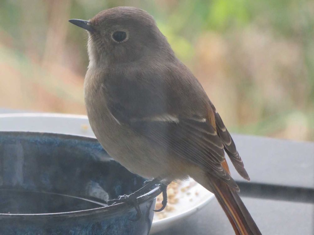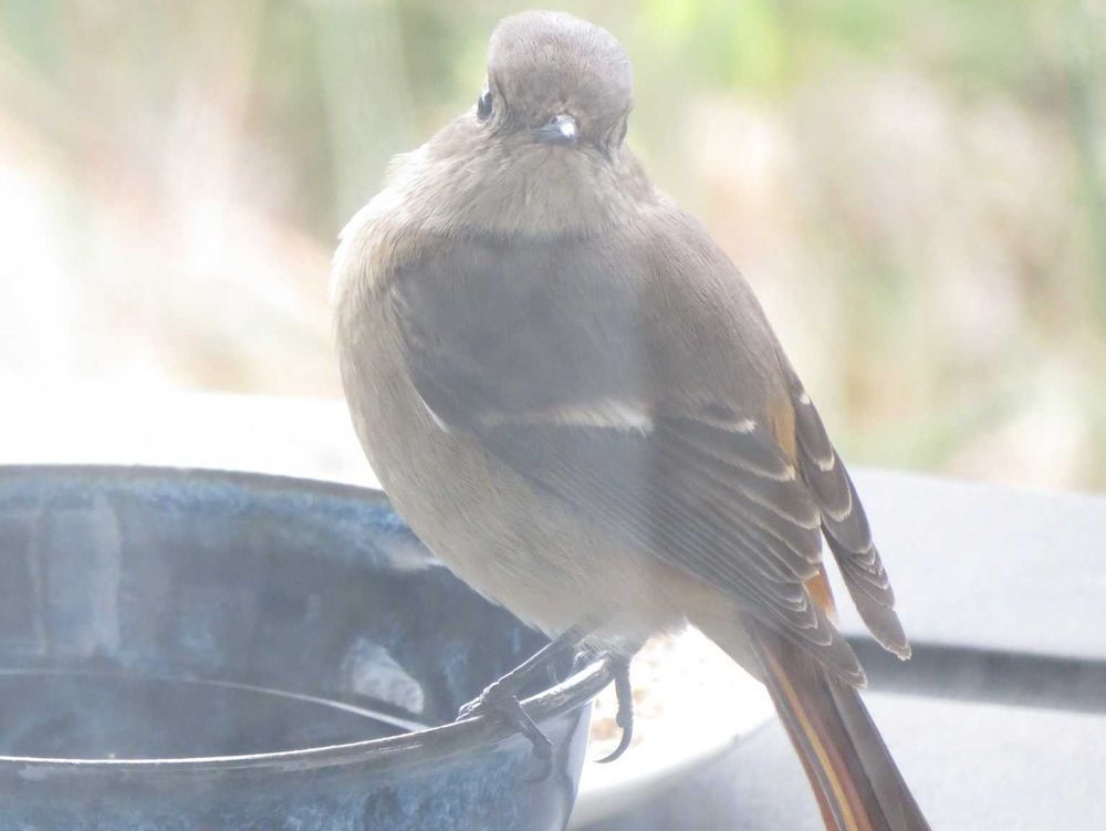 また、訪れました♪窓越しに撮影😊ちょくちょく来ています。餌を食べるわけでもなく、水の入った茶碗にとまります