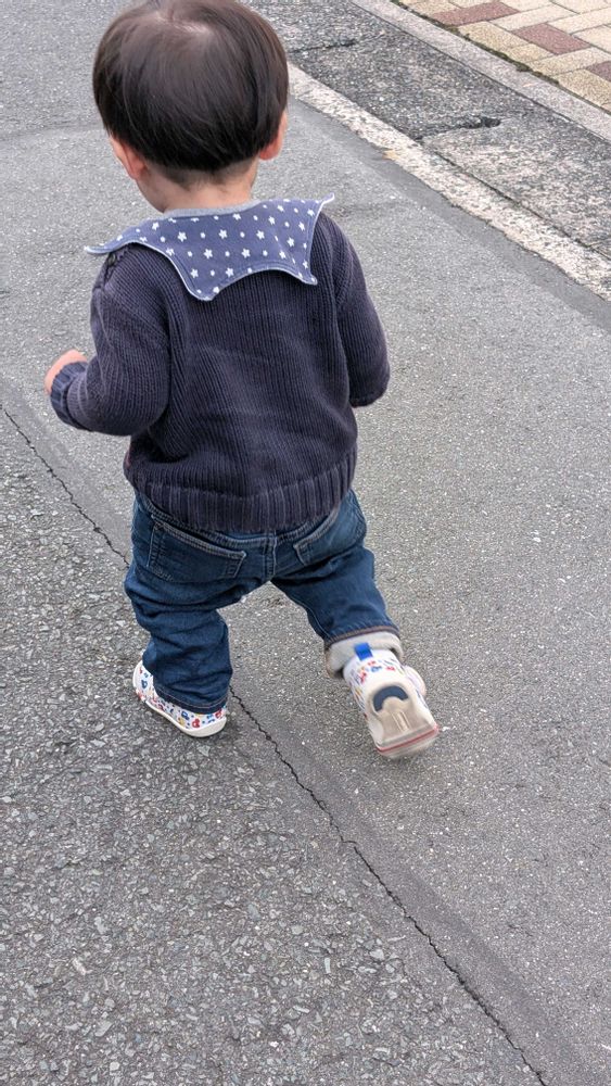 それが、🧒は歩き出したらしっかり歩いたけど 👶はまだヨタヨタしてるの😂