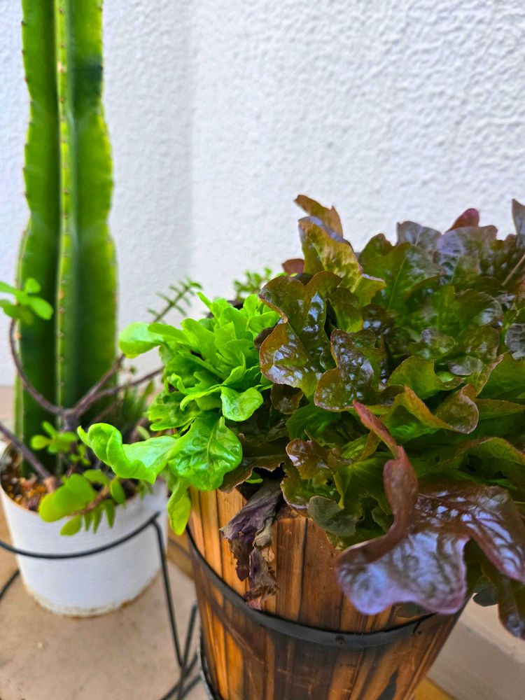 岡山県産の根付きレタスを買ってすぐに食べず・鉢で育ててますが🤭使い道バッチリです🥬