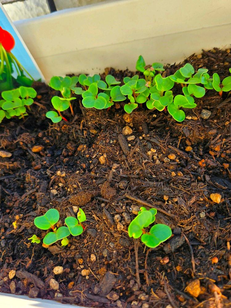 ラディッシュ寒くっても双葉が大きく育ってた🤭🌱⋆。