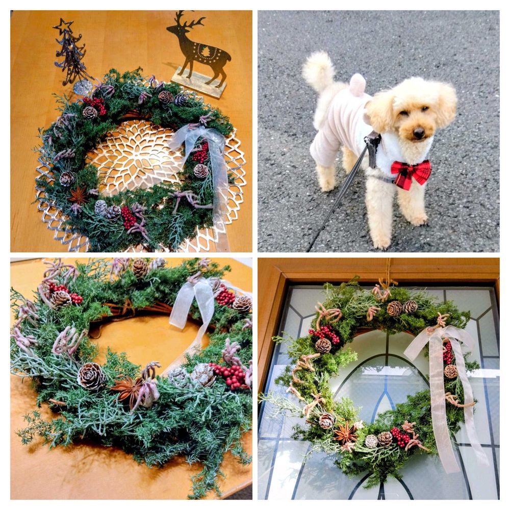 リースは毎年作っていますが、時間がなく、いつも最後は時間に迫られ適当になります🤭💞