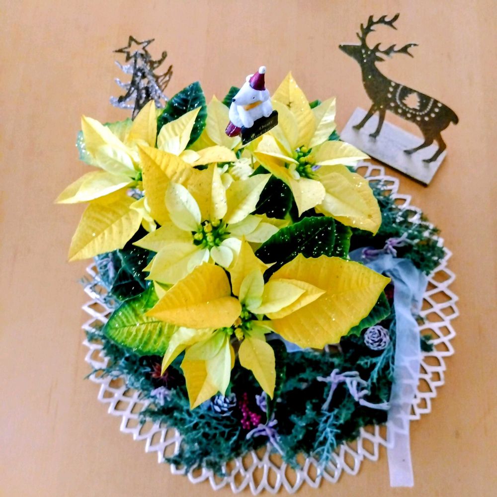ポインセチアも毎年、何色にしようか迷いますが、初めての黄色で新鮮です💛✨