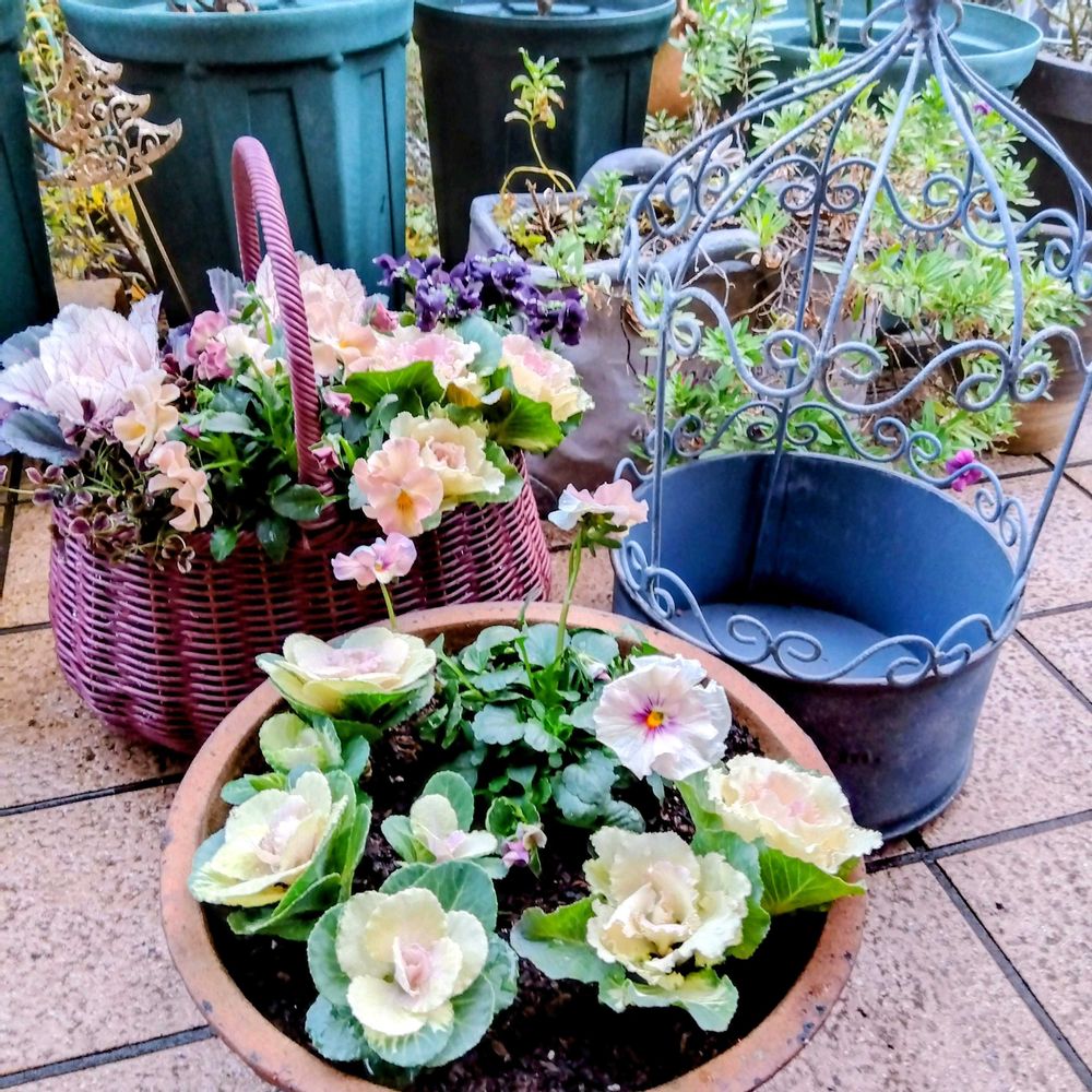 ④最後のビオラ うえた フラワーコレクションと残りの葉ボタンを全部入れました🤭