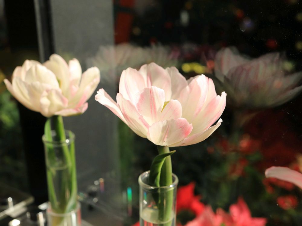 プリンセチアのスタンダード仕立て,生チューリップのリース,一輪挿しのチューリップの投稿画像